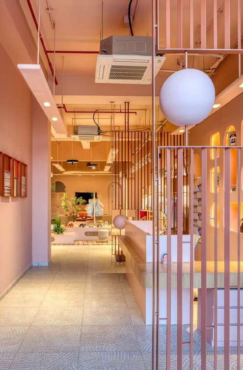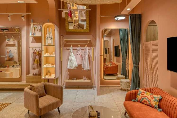 Evoking the feeling of joy and playfulness, the store is an attempt to be an engaging place for both the adults and children. The muted colour palette further enhances the garments displayed and other accessories.