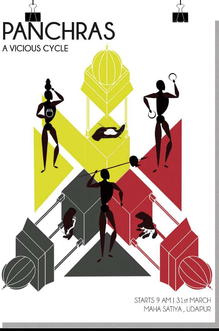 The 3 scrolls of each cluster Representation inspired from the works of SmitaMoksh Studio and Miniature painting of Rajasthan. The curatorial sequence showing the sequence of objects and full site showing the microenvironments interacting with the objects forming a cycle backed by the theory of Samsara