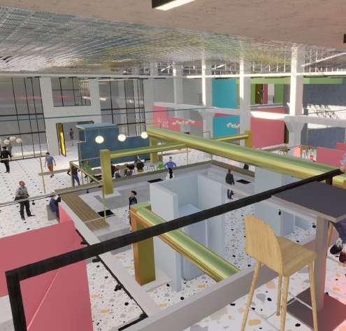 Abstraction of words to images to montages further transferred into space planning and then given materiality. With the concept of food creating a memory, a new experience or reminiscing a past experience, whilst it being a process of combing and altering, planes were developed depicting a play of these words that created a wholistic design language in the whole space. PHOTOMONTAGES