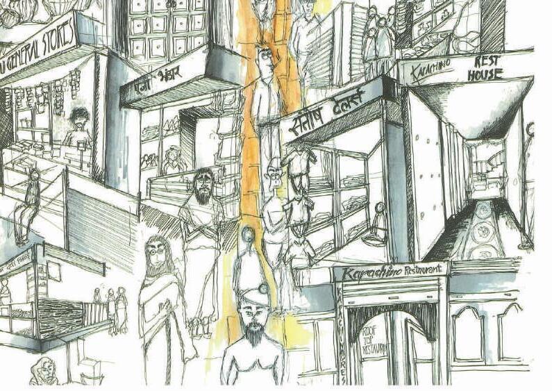 Foundation basics involves all sort of basic sketching exercises collecting data and representing it in the form of representative ink sketches The first sketch is done as a group work with Krishi Jhaveri and Sakina Tajani capturing the essence of Bengali Tola, a busy market street of Varanasi.