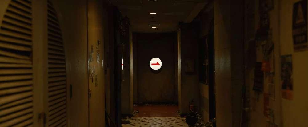 Dia 1 : Figure 3 is captures the transitional space in a one point perspective in a over the shoulder view in a medium shot in a deep focus Dia 2: Fig 1,2 is captured by a moving camera frame in a one point perspective, decreasing the pov to the subject in a medium shot Dia 5: The building elements such as lights, flooring , and doors all add to the unidirectionality of the alley way. Dia 7 : All the shots Dia 6: The alley way follow a singular linear geometry without any further connections thus adding to the unidirectionality of the space. The alleyway made of desaturated color scheme of reds and browns, thus making us feel eerie. The signage is contrasted by using a saturated warm white for it to shine Fig 1: A semiotic sign of to point a direction to increase the directionality in the spaceObject : the room, the aesthetic and objects of the room