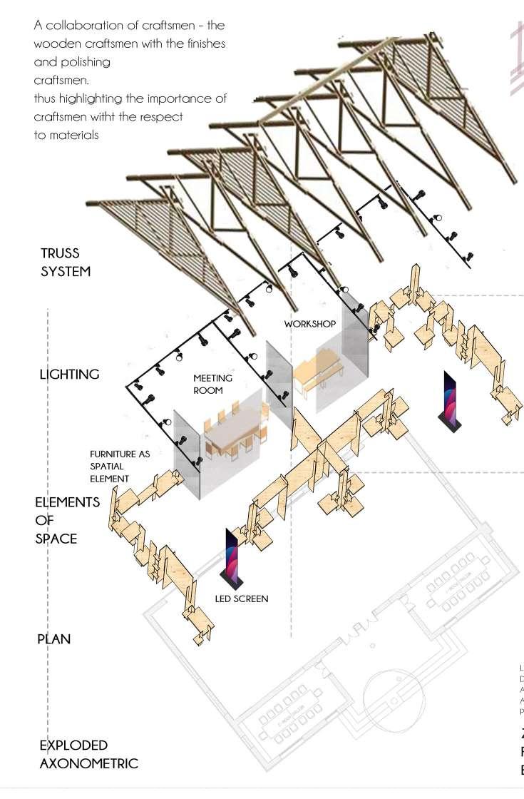 Pans and Pens- a niche co-working space for food content creators and allied fields. The design process started by converting words into imagery and vice versa, further abstracting these images into models. With the concept of food creating a memory, a new experience or reminiscing a past experience, whilst it being a process of combing and altering, planes were developed depicting a play of these words that created a wholistic design language in the whole space.