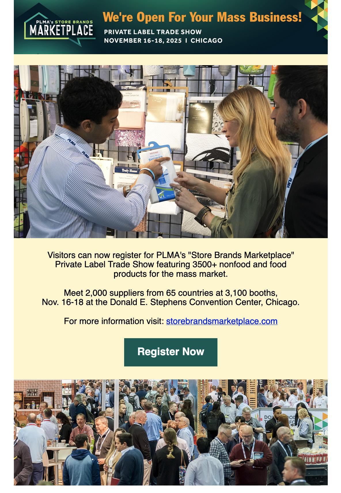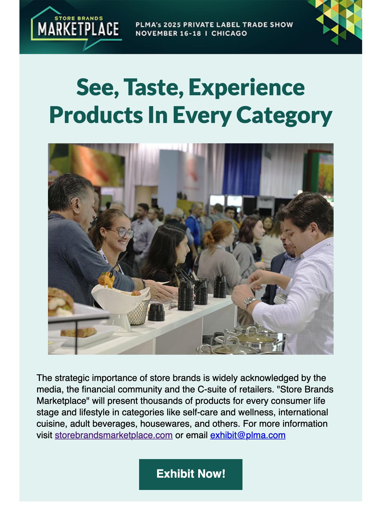 The US is at a watershed moment in the recognition of the strategic importance of private label by the media, the financial community and, most importantly, by the C-suite at retailers. To ensure growth, the industry will assemble to explore emerging opportunities, particularly in thriving categories like premium skincare, wine & spirits, housewares, ethnic & gourmet food, first aid & devices, and snacks & confectionery. “Store Brands Marketplace: PLMA’s 2025 US Private Label Trade Show,” 16-18 November, Chicago, will present thousands of food and nonfood products under one roof.