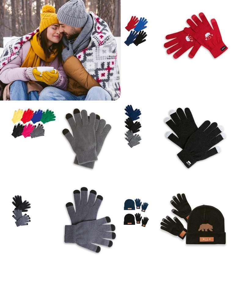 Touch screen gloves with special coating on 5 fngers, acrylic. In one size for adults. Printing: TB(8), DTB(FC), BR(10)