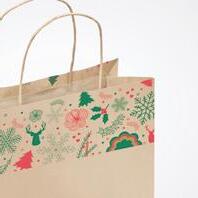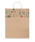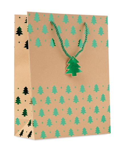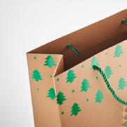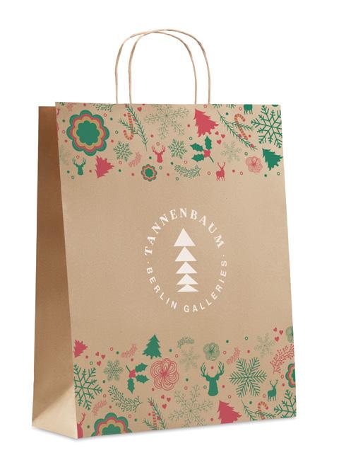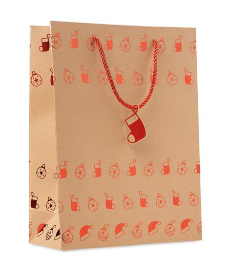 Elegant gift kraft paper bag with seasonal pattern. Gift tag included. 250 gr/m². Size 25x11x32 cm Print technique Screen printing,DL