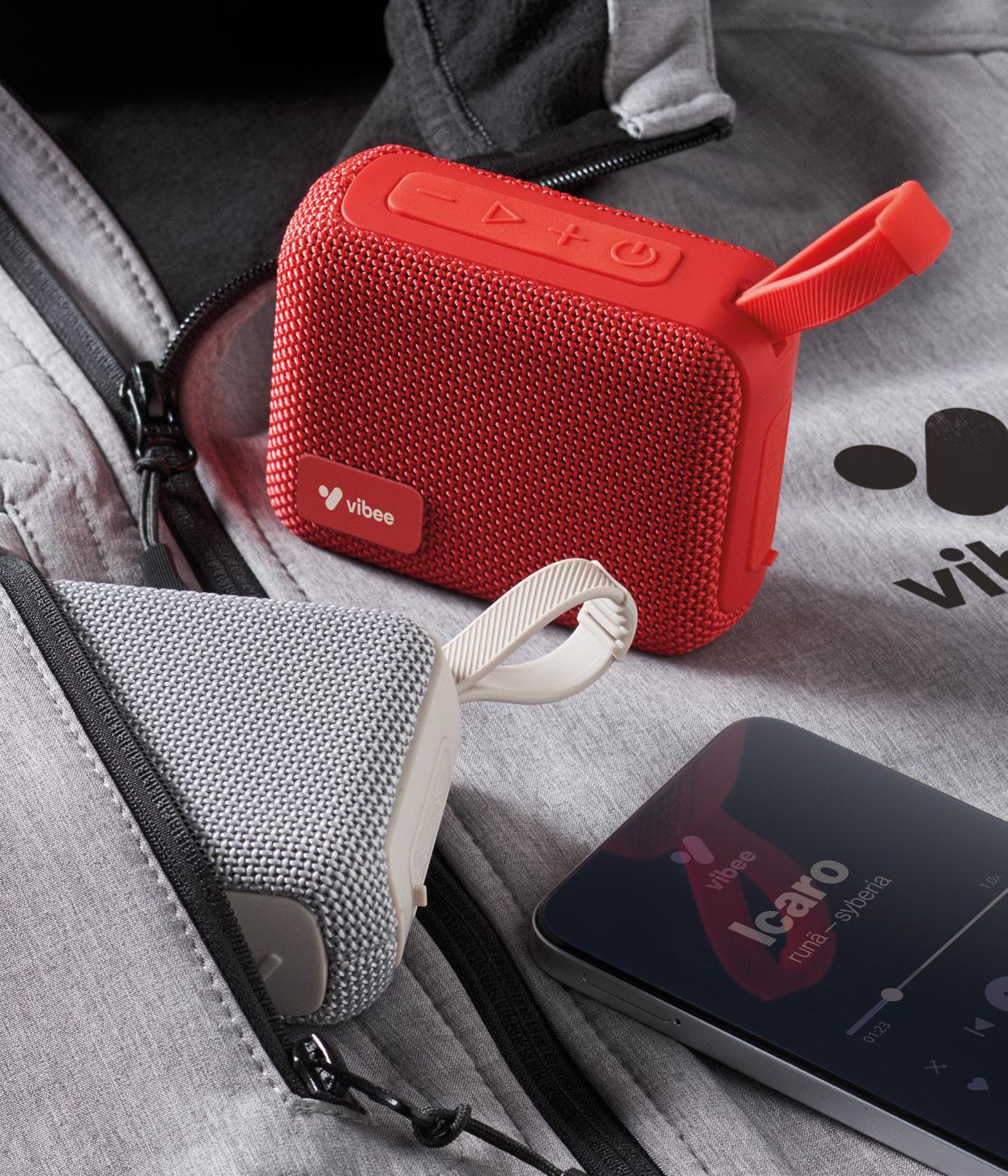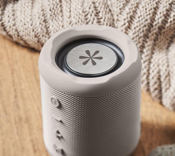 4.2 wireless speaker in ABS casing, RPET polyester fabric and loop. Magnet on back part supports stand functionality. Rechargeable Li-ION 300 mAh battery included. Output data: 3W, 4 Ohm and 5V. Playing time approx. 2 hours.