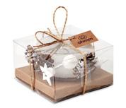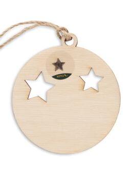 Set of 3 wooden Christmas ornaments with 4 colouring pencils. Presented in a kraft box. Wood is a natural product, there may be slight variations in colour and size per item, which can affect the final decoration outcome. Size 9x9 cm Print technique Pad printing,PD,DL