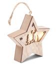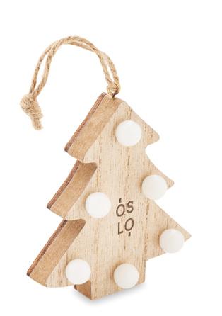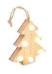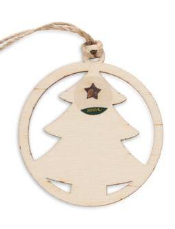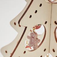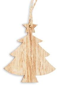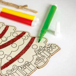 Poplar wooden Christmas tree ornament with 3 colouring markers and jute cord. Size 9x3,7x0,2 cm