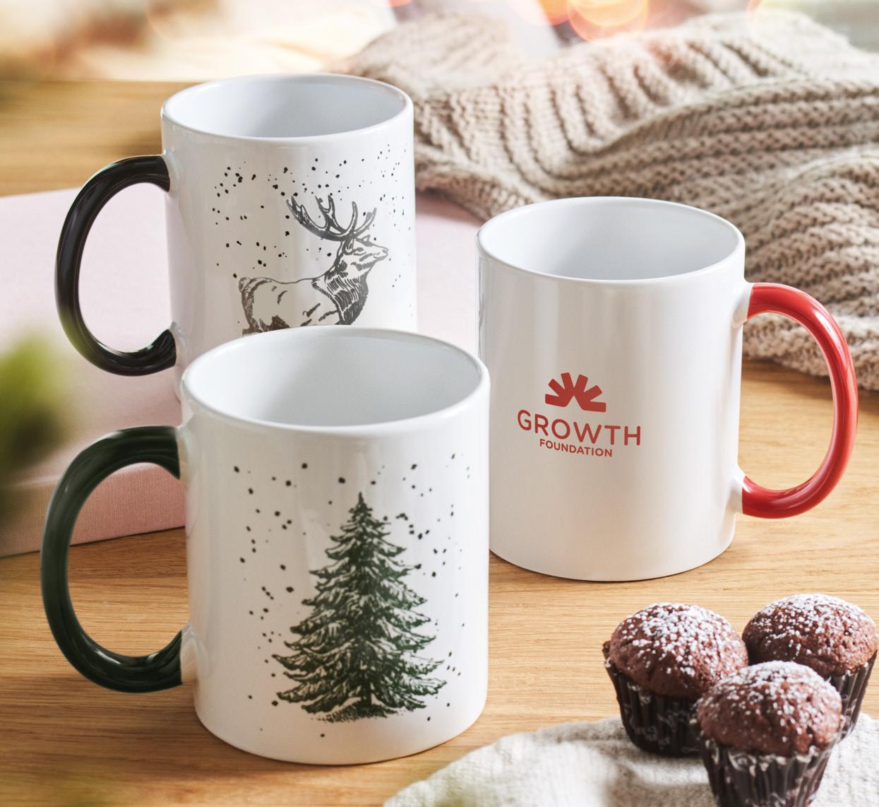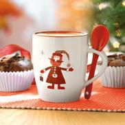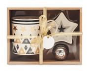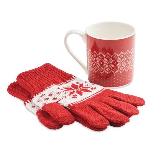 Winter gift set including a touch screen knitted tactile gloves with a snowflake pattern and a ceramic mug. Capacity: 300 ml. Presented in a matching box. Size 12,2x9,2x9,8 cm Print technique Round screen printing,P,DL