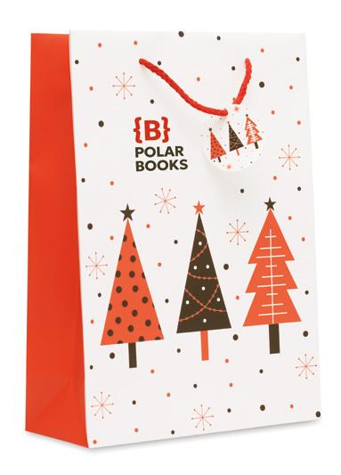 Christmas medium gift paper bag (30% recycled) with tag included. 150 gr/m². Size 22x11x30 cm Print technique Screen printing