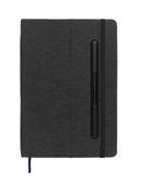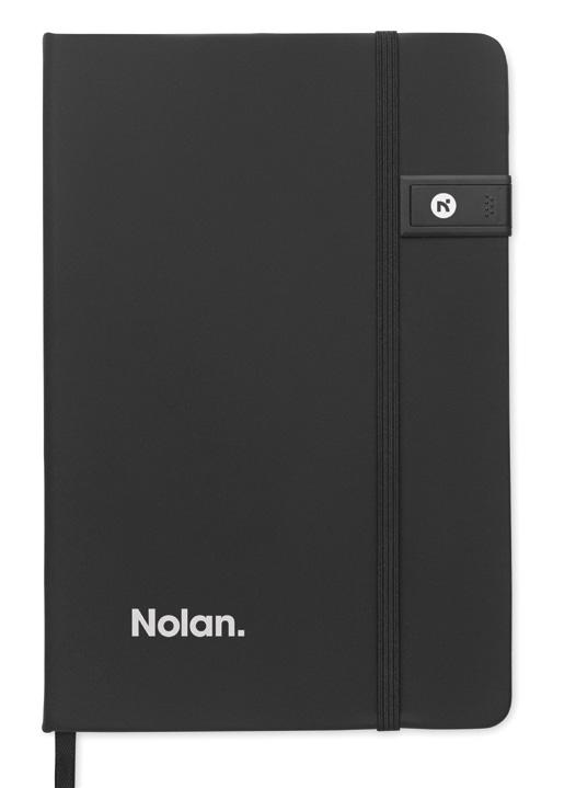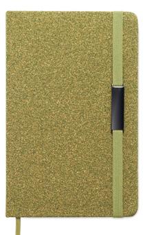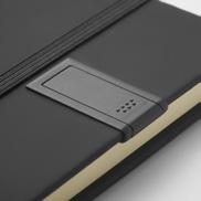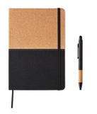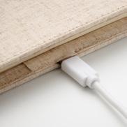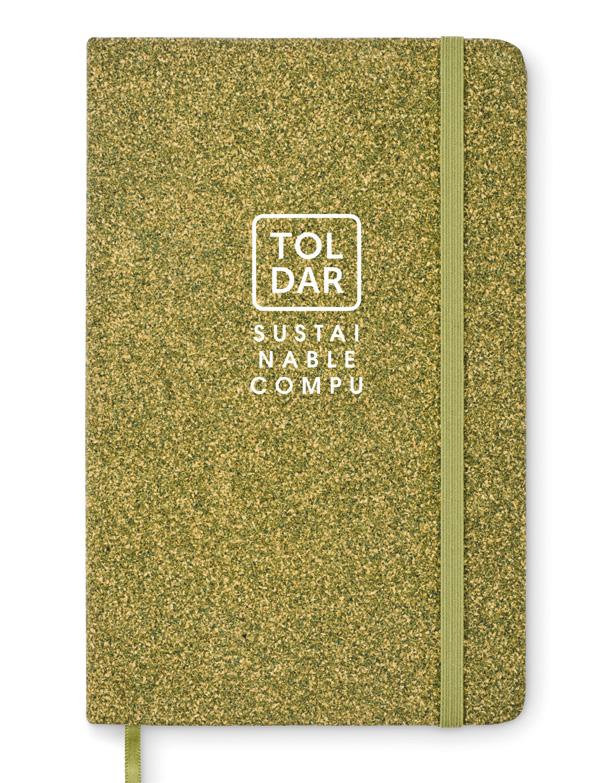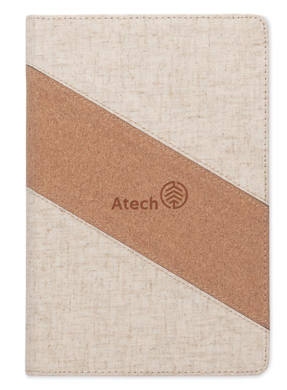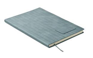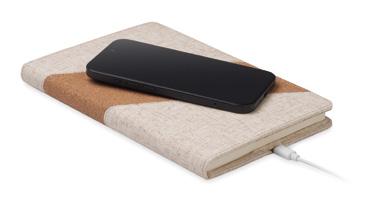 2 in 1 notebook. A5 notebook with integrated wireless charger 15W. Features cotton and cork details on cover, 128 lined paper (64 sheets). Ribbon bookmark. Size 21x15x2 cm Print technique Laser engraving,S,T1,TD,TR,B