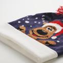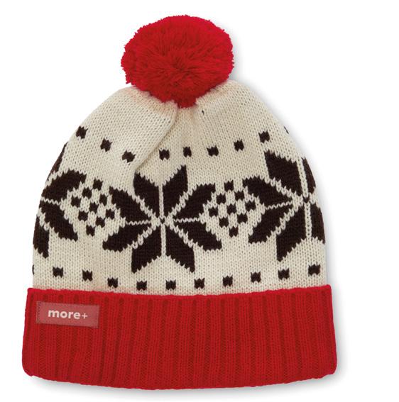 Christmas knitted beanie with cuff and bobble in soft stretchable acrylic. Size 20x23 cm Print technique Embroidery