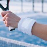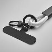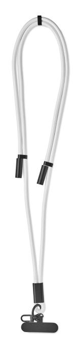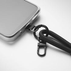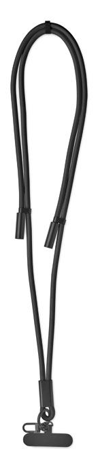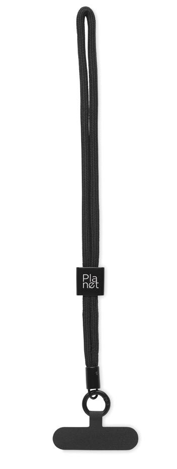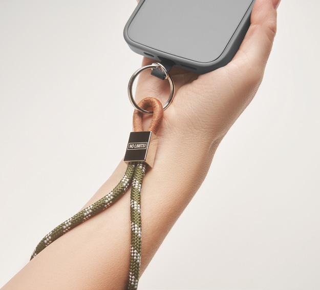 Adjustable phone cord holder wrist strap in RPET polyester. Length 25 cm.