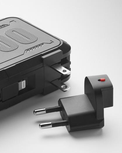 Power bank 20000 mAh in ABS with built-in US plug and removable AC plug. USB A and type-C in/out. Type-C and 2 in 1 pin integrated cables. Size 11,6x7,1x3,1 cm Print technique Pad printing,DL,DO1