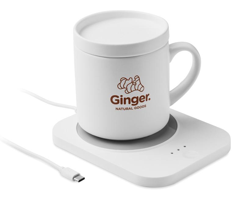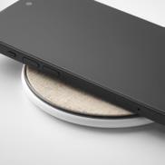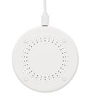 Wireless charger in recycled ABS with cotton and cork detail. Connect to your computer, place smartphone on it and allow it to charge. Output: DC 9V/1.67A (15W). Size 90x90x8 cm Print technique Pad printing,L