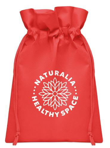 Small gift draw cord bag in RPET non-woven 80 gr/m². Size 20x30 cm Print technique Screen printing,T1,TD,TR
