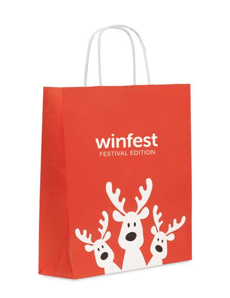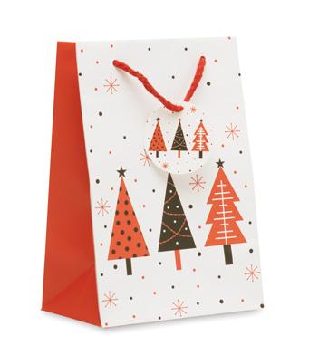 Christmas medium gift paper bag (50% recycled paper). 90 gr/m². Made in EU. Size 25x11x32 cm Print technique Screen printing,T1,TD,TR,DL
