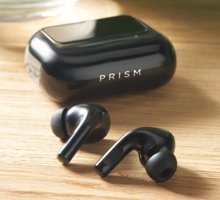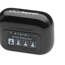 Recycled ABS True Wireless Stereo (TWS) 5.0 wireless stereo earbuds (30 mAh) with ANC/ENC and microphone and 230 mAh charging base. Touch screen control and display. Size 60x47x22 cm Print technique Pad printing,DL