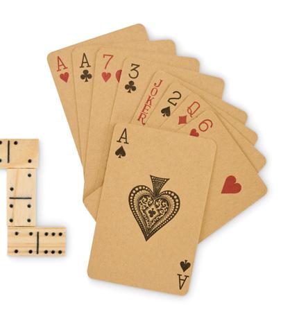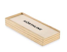 Wooden domino and recycled paper playing cards set. Presented in MDF box. Size 19,2x7,6x3 cm Print technique Pad printing,L,S,DL,DO1