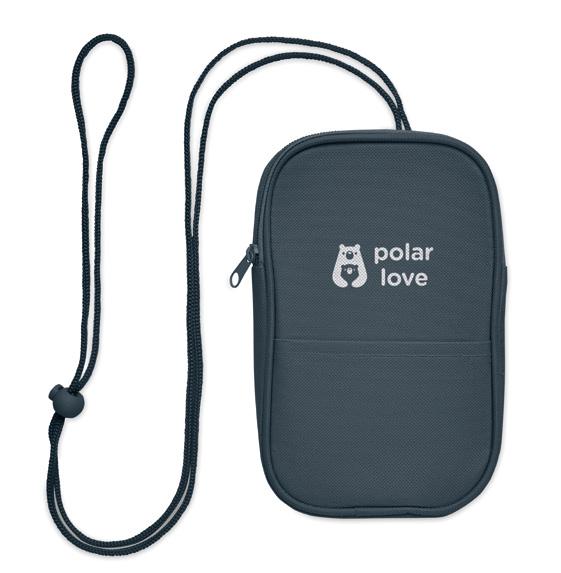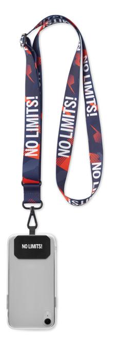 Sublimated adjustable crossbody phone holder. Also available in rPET: ML1383