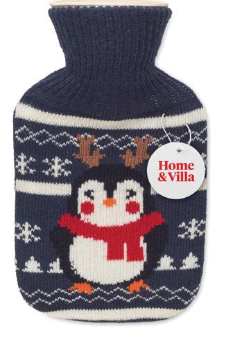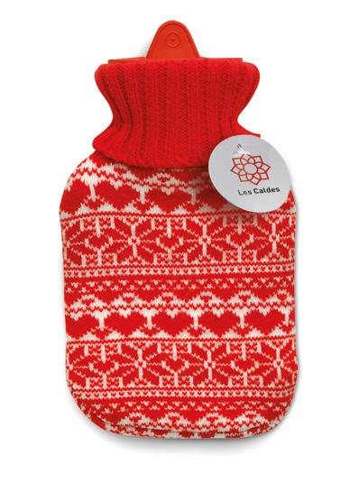 Hot water bottle with jersey in Christmas pattern. Used to provide warmth, typically whilst in bed, but also for the application of heat to a specific part of the body. 250 ml capacity. Size 22,5x12x5 cm Print technique Pad printing,T1,E,TR,DL