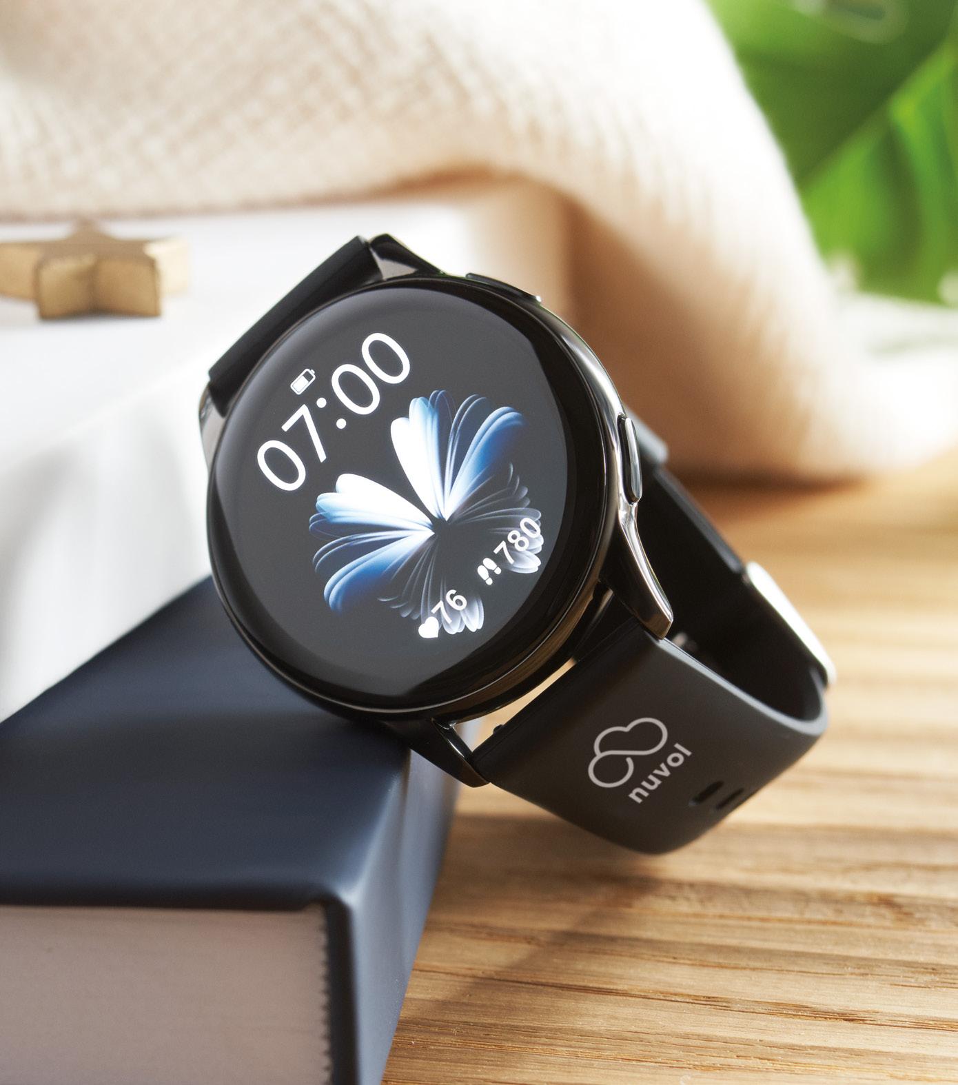 IP68 waterproof wireless smartwatch in zinc alloy with silicone strap. 1.32 inch AMOLED touch screen. Rechargeable Li-Pol 300 mAh battery. Requires a free app (FitCloudPro available in both iOS and Android). Size 24,5x4,18x1 cm Print technique Pad printing,S