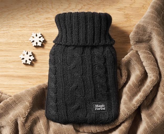 Hot water bottle with jersey in Nordic design. Used to provide warmth, typically whilst in bed, but also for the application of heat to a specific part of the body. 310 ml capacity. Size 20x12 cm Print technique Pad printing,DL,T1,E,TR