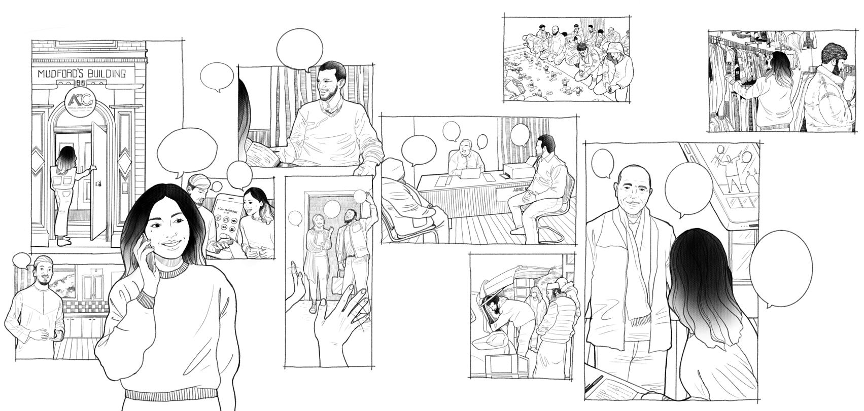through the sharing of food, as a way of building connections with the wider community. Through this Live Project, we worked with The Creative Sanctury Group to develop a brand identity to take Story Chefs to the next level, developing a ‘pop-up’ kitchen and storytelling performance space for the group to share their food and stories with the public in different settings throughout the UK.