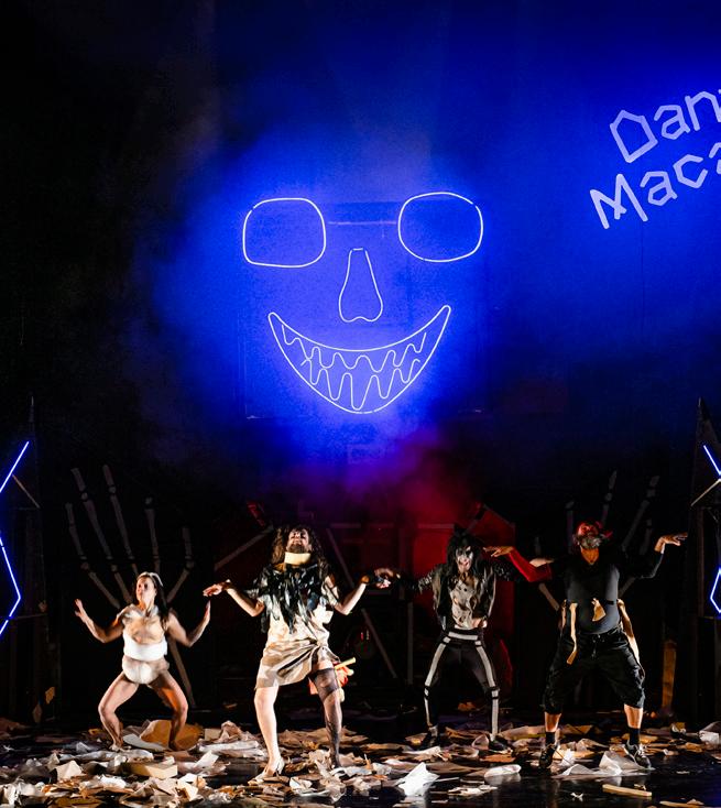 Opvallend veel voorstellingen en projecten gaan dit jaar over chaos. Over als alles niet loopt zoals het hoort, over ongeluk, falen, vallen… en opstaan. Dit is geen toeval, want dit jaar brengt Cultura Nova met haar programma een ode aan veerkracht. Van niets iets maken. Van doorgaan, opnieuw proberen, uitzoeken en openstaan voor nieuwe kansen, nieuwe wegen. Kwaliteiten die Heerlen en onze regio zo bijzonder en veerkrachtig maken. Maar waar ook kinderen groots in zijn. Dat laat de openingsvoorstelling van dit festival, Mo et le Ruban Rouge van L’homme Debout, zien. De cover van dit programmaboekje toont een beeld uit de voorstelling. Mo, het kind op dit beeld, is reusachtig en sterk, de volwassene ernaast is klein en volgt de blik van het kind dat zijn nieuwe weg zoekt. Of zoals de tragikomische figuren van Danse Macabre. Zij vallen buiten de sociale norm. Ondanks tegenslagen en moeilijkheden staan zij telkens weer op en rapen zij zichzelf bij elkaar. Met ongewone oplossingen vinden zij een plek in een ontregelde wereld.