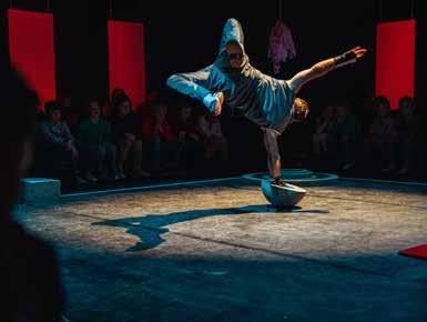 Opvallend veel voorstellingen en projecten gaan dit jaar over chaos. Over als alles niet loopt zoals het hoort, over ongeluk, falen, vallen… en opstaan. Dit is geen toeval, want dit jaar brengt Cultura Nova met haar programma een ode aan veerkracht. Van niets iets maken. Van doorgaan, opnieuw proberen, uitzoeken en openstaan voor nieuwe kansen, nieuwe wegen. Kwaliteiten die Heerlen en onze regio zo bijzonder en veerkrachtig maken. Maar waar ook kinderen groots in zijn. Dat laat de openingsvoorstelling van dit festival, Mo et le Ruban Rouge van L’homme Debout, zien. De cover van dit programmaboekje toont een beeld uit de voorstelling. Mo, het kind op dit beeld, is reusachtig en sterk, de volwassene ernaast is klein en volgt de blik van het kind dat zijn nieuwe weg zoekt. Of zoals de tragikomische figuren van Danse Macabre. Zij vallen buiten de sociale norm. Ondanks tegenslagen en moeilijkheden staan zij telkens weer op en rapen zij zichzelf bij elkaar. Met ongewone oplossingen vinden zij een plek in een ontregelde wereld.