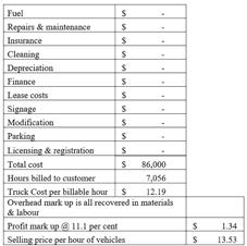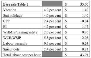 For the sake of this topic, here are a few assumptions: direct labour has an averagebaserateof$35.00anhour;labourproductivity(hoursbilled)is90per cent of hours paid; materials/subs to labour are 1.45:1.00, meaning for every $1spentonmaterialswespend$1onlabour;markuponmaterials/subsis25 percentofcost;markupforprofitis11.1percentofcostorrather10percent ofsellingprice;markupfortruckchargesis11.1percentforprofit;andmark uponlabouristherateneededtorecoverbalanceofoverhead,wehavealready recoveredsomeoverheadonmaterials/subs.