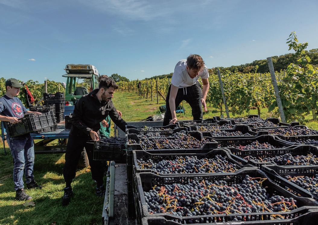 I was one of the first Viticulture Crop Technician apprentices studying at Plumpton College and working for New House Farm in Bodiam. Over the two years of training, I learned practical and specific vineyardrelated knowledge that helped me understand the “why” of why we do certain things in the vineyard. For example, I now understand that we try our best to avoid the rain when pruning due to the risk of spreading trunk diseases in these conditions.