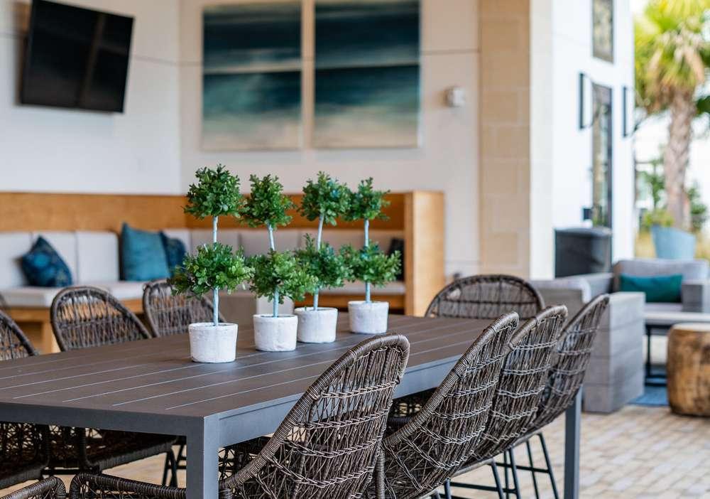 By utilising the first-floor structure, a covered outdoor space connecting to the courtyard was created, linking a pool area, putting green, the rest of the garden and an outdoor fire place, which has been built into the exterior architecture, showcasing Adbri Masonry’s ivory concrete brick