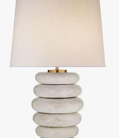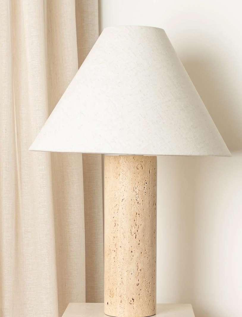 Pared back and timeless, the June Lamp features a carved travertine stone base making each piece unique Organic and craftsman at En Gold