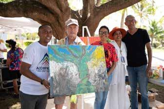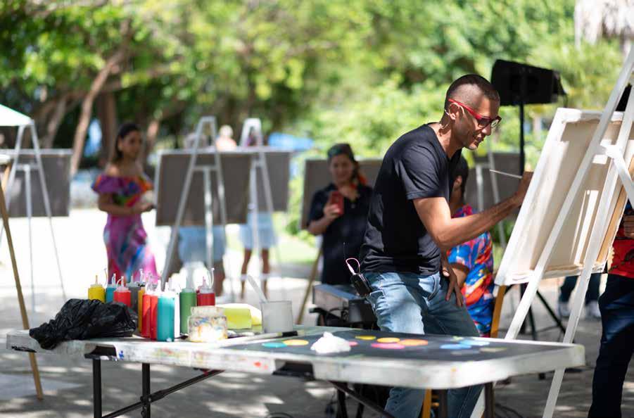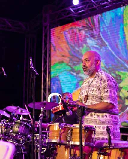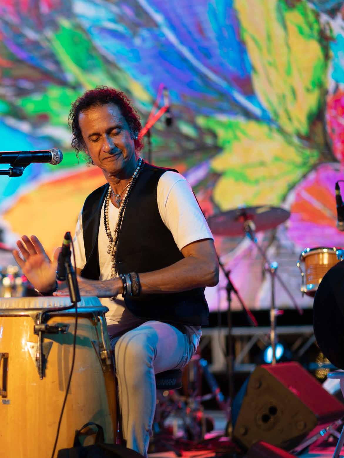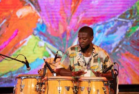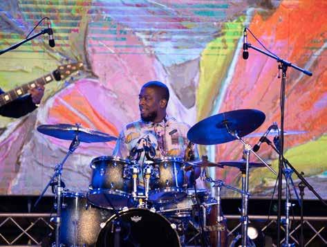 En cada versión del Dominican Republic Jazz Festival el artista plástico Adolfo Faringthon crea un mural escenográfico con un tema en específico, este año ha elegido una obra dentro del marco del concepto de su más reciente colección VIVIR, donde este artista dominicano da honor a la vida misma, a ese deseo constante de saber que existimos como parte divina de la creación de Dios.