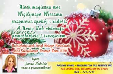 Rozwiązanie krzyżówki prześlij do nas e-mailem na adres ogloszenia@tygodnikplus.com lub na nasz adres pocztowy 63 Union Blvd, Wallington NJ 07057 wraz z podaniem imienia, nazwiska i dokładnego adresu. Wszystkie prawidłowe rozwiązania przesłane do dnia 25.12.25r. wezmą udział w losowaniu nagrody.
