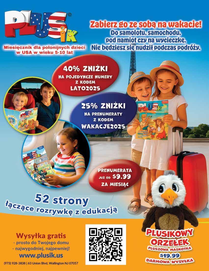 Rozwiązanie krzyżówki prześlij do nas e-mailem na adres ogloszenia-ny@tygodnikplus.com lub na nasz adres pocztowy 63 Union Blvd, Wallington NJ 07057 wraz z podaniem imienia, nazwiska i dokładnego adresu. Wszystkie prawidłowe rozwiązania przesłane do dnia 11.08.25r. wezmą udział w losowaniu nagrody. Dane laureata obecnej krzyżówki zamieścimy na naszej stronie w dniu 18.08.25r. Nadesłanie przez Czytelnika rozwiązania krzyżówki oznacza, iż wyraża on zgodę na opublikowanie imienia, nazwiska oraz miejsca zamieszkania na liście laureatów. Rozwiązania prosimy przysyłać tylko raz. Duplikaty będą kasowane.
