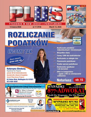 REKLAMA I MARKETING 973-928-3838 reklama@tygodnikplus.com OGŁOSZENIA DROBNE ogloszenia-ny@tygodnikplus.com