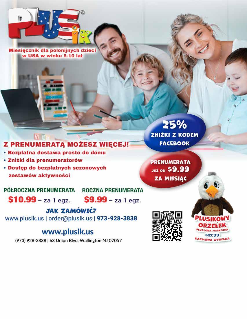 Rozwiązanie krzyżówki prześlij do nas e-mailem na adres ogloszenia@tygodnikplus.com lub na nasz adres pocztowy 63 Union Blvd, Wallington NJ 07057 wraz z podaniem imienia, nazwiska i dokładnego adresu. Wszystkie prawidłowe rozwiązania przesłane do dnia 2.4.26r. wezmą udział w losowaniu nagrody.
