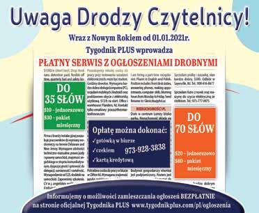 tel. 973-928-3838 ✷ 15 lat z Wami! www.tygodnikPLUS.com 11 REKLAMA
