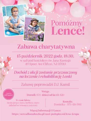 Wszelkie prawa zastrzeżone. Wykorzystywanie w całości lub częściowo grafiki lub tekstu z reklam wy konanych przez PLUS jest surowo zabronione. Redakcja nie zwraca materiałów nie zamówionych, zastrzega sobie prawo redagowania nadesłanych tekstów i nie odpowiada za treść zamieszczonych reklam i ogłoszeń. Zastrzega sobie również prawo do odmówienia druku reklamy lub ogłoszenia bez podania przyczyny. Redakcja nie ponosi żadnej odpowiedzialności za wszelkiego rodzaju porady i wskazówki zawarte w artykułach sponsorujących. Adres internetowy www.tygodnikplus.com ©2007-2022 PLUS Media Group, Corp.