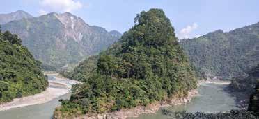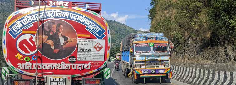 i kunszt kierowców kolorowych pojazdów zmierzających z towarami od strony indyjskiej granicy. To wszystko w kurzu i w tonach czarnych spalin. Czysta egzotyka. Po godzinie jazdy zakrętami jak agrafki, droga staje się już normalna, ruch maleje, a śliczna górska rzeka koi nasze oczy zielonkawą, czystą wodą. Powyżej porośniętych dżunglą stoków „wiszą” w powietrzu himalajskie masywy Ganeszu i ośmiotysięcznika Manaslu.