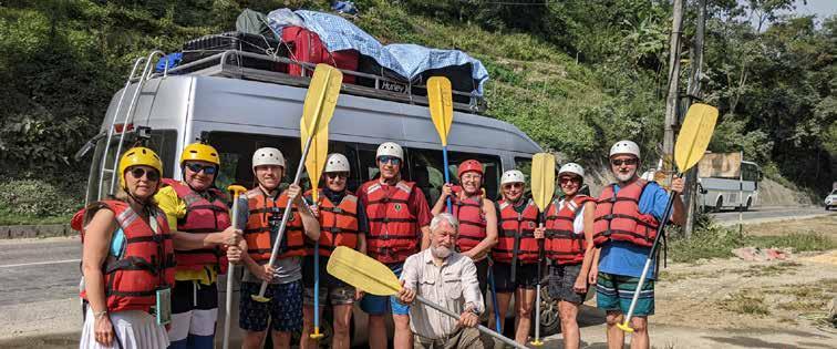 Po czterech godzinach pełnej wrażeń jazdy docieramy do miejsca, gdzie lokalna firma ma już dla nas przygotowane pontony, kaski i wiosła. Czeka nas trzygodzinny, około 15-kilometrowy spływ po Trisuli, wodami kategorii „wyższej trójki”. Oczywiście, jak dotąd dzień w dzień, pod nieskazitelnie błękit-