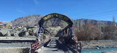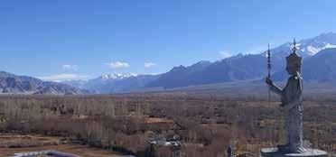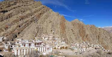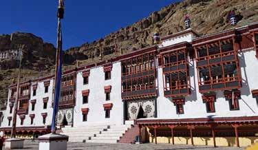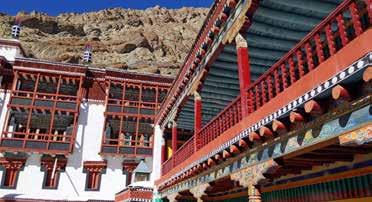 Udekorowanym modlitewnymi chorągiewkami mostem przekraczamy święta rzekę Indus i wspinamy się serpentynami po aluwialnym stożku nasypowym w stronę wąskiej doliny wciętej w północne stoki Himalajów. Na horyzoncie widać ośnieżone szczyty, ale najwyższe góry świata w tym akurat miejscu są zbudowane z naprzemianległych warstw piaskowców i zlepieńców o brązowym kolorze. Klasztorny kompleks Hemis ukazuje się znienacka, pozostając do ostatniej chwili ukryty za załomami skał. Jego widok obezwładnia; panorama z sąsiedniego pagórka (wcale nie jest łatwo tam się wdrapać), a szczególnie frontowa ściana głównego pomieszczenia oglądana z dziedzińca.