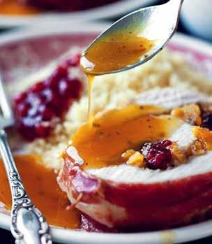 Wyjąć wykałaczki z rolady, zdjąć sznurki i pokroić na porcje. Podawać z sosem pomarańczowym i kuskusem.