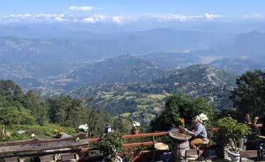 Przeciskając się przez zatłoczone ulice miasta, jedziemy do hotelu, na obrzeżach stolicy, gdzie czeka nas widok jak z bajki: ściana Himalajów pod błękitnym niebem i zielone do liny poniżej nas. Hotel też imponuje elementami newarskiej architektury, wygodnymi pokojami, a każdy z bal konem, z widokiem na góry!