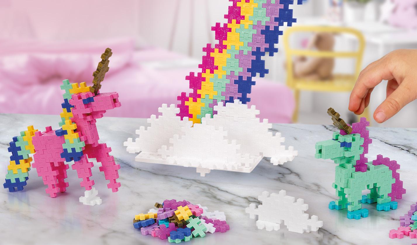 Build a colorful unicorn with Puzzle by Number that combines fun play with Plus-Plus and learning. Match colors and numbers and build your mosaic creation.
