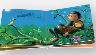 • Auf jeder Doppelseite ist es ein anderes kleines Tier, das sich zum Schlafen bereit gemacht hat. Wer es ganz sanft streichelt, kann hören, wie eine kleine Eule, ein Hasenkind oder ein Kätzchen im Schlaf schnuff elt, brummelt oder schnurrt.
