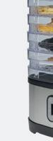 Zucchinischeiben nebeneinander auf den Dörrebenen des Dörrautomaten auslegen. Mit Basilikum, Rosmarin, Salz und Pfeff er würzen. Zucchini bei 60 °C ca. 10 –12 Stunden dörren. Die Chips sind fertig, wenn sie sich beim Anfassen nicht mehr feucht oder klebrig anfühlen.