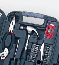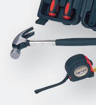 • Inhalt: 3 Schraubendreher, 1 Wasserpumpenzange, 1 Spitzzange, 1 Rollgabelschlüssel, 1 Bithalter, 1 Zimmermannshammer, 1 Schere, 20 Bits in zwei Kunststoff haltern, 8 Imbusschlüssel in einem Kunststoff -Halter, 1 Maßband, 6 Feinmechaniker-Schraubendreher, 89-tlg. Befestigungsset (Nägel, Schrauben und Dübel)